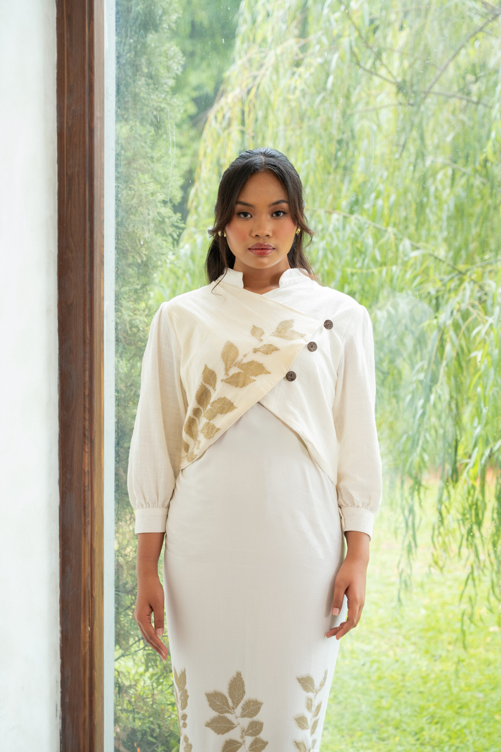A modern interpretation of the kebaya with clean lines. Elegant, fluid, and thoughtfully refined